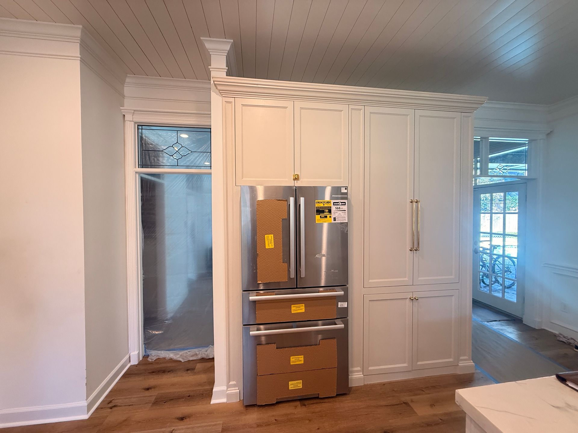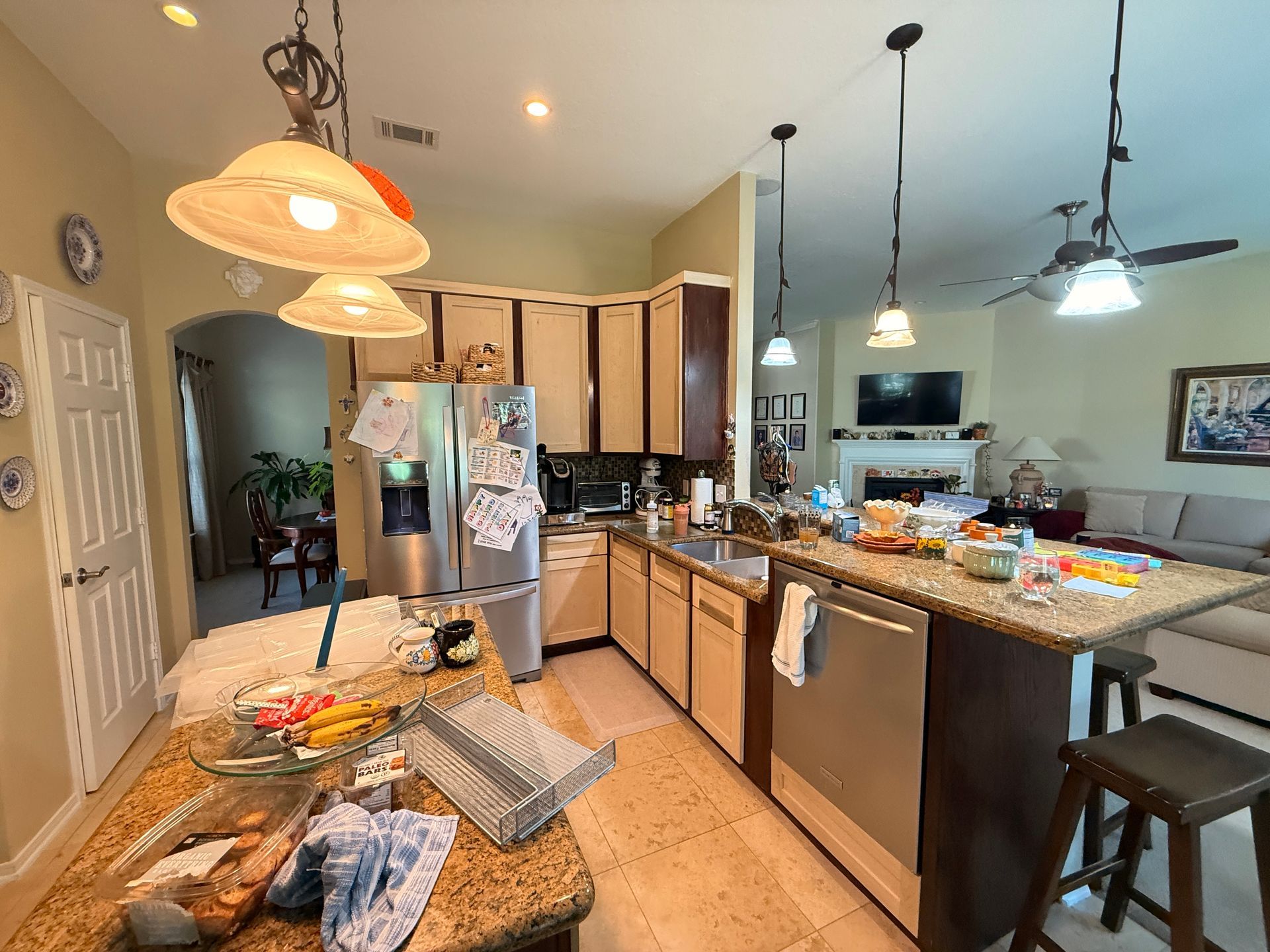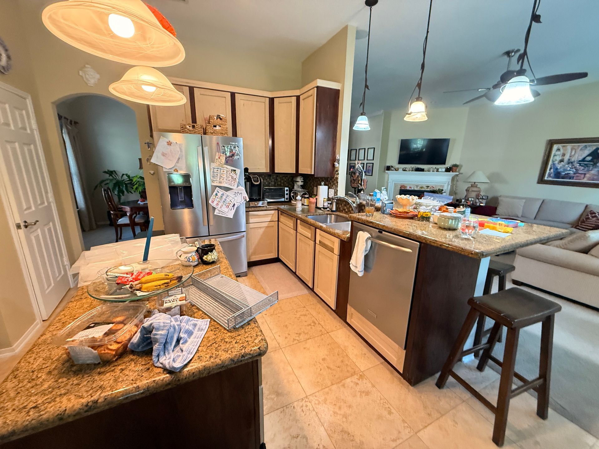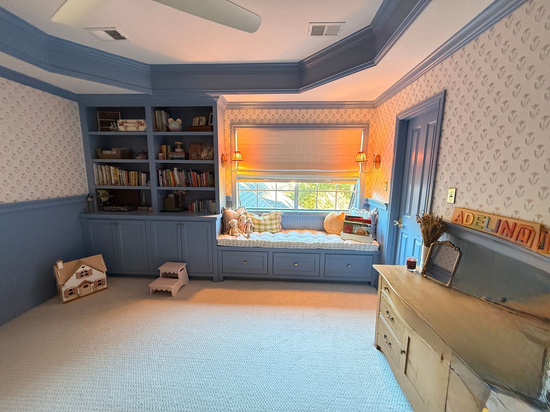 A cartoon penguin with a green scarf and hat sits on a snowy hill, holding a green gift box with a red ribbon.